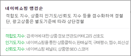 인기도 기반 추천이란, 말그대로 가장 인기있는 아이템을 추천하는 것을 의미한다. 하지만 '인기'는 추상적인 개념이라 이를 평가할 수 있는 지표가 필요하다. 우리가 인터넷에서 상품을 고르거나, 뉴스를 볼 때 어떤 것들을 고려하는가? 조회수나 좋아요/싫어요 수, 리뷰 수, 평균 평점 등을 고려할 것이다. 대표적인 예시로 네이버쇼핑에서 제공하는 랭킹순 아이템이 있다. 개인에게 맞춰서 제공되는 추천은 아니지만 인기도와 신뢰도 지수 등을 종합하여 점수가 높은 아이템을 상단에 제시해주는 기능이다.