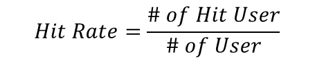 4) 전체 사용자 수 대비 Hit한 사용자 수 비율을 구하면 Hit Rate가 된다.